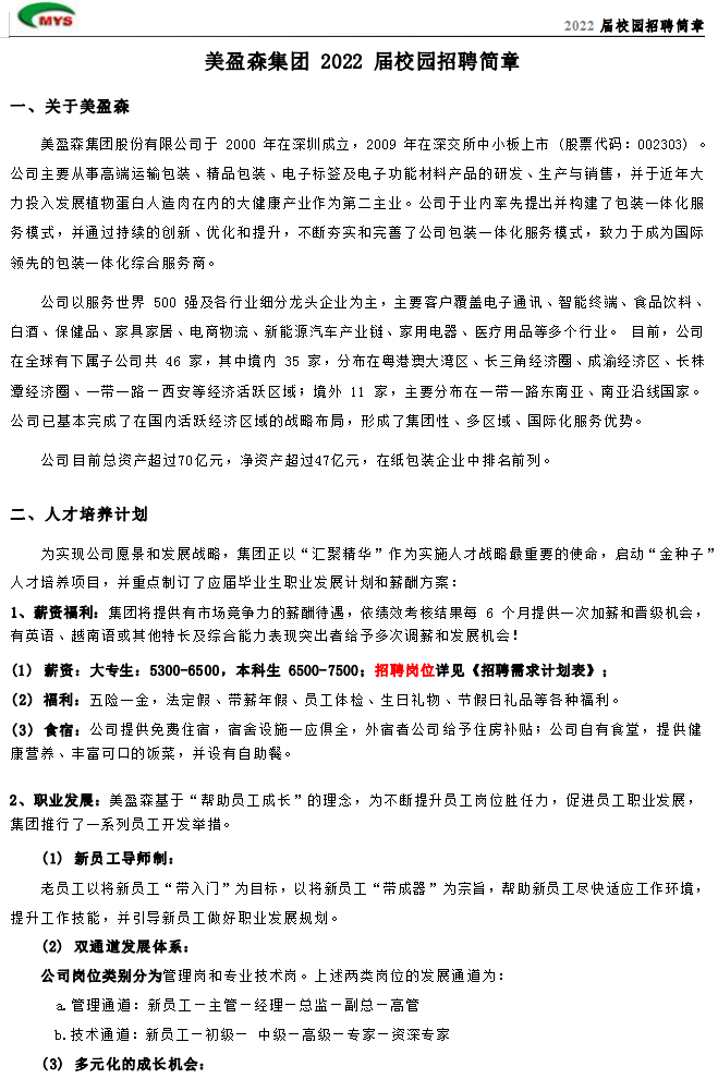 美盈森集团 2022 届校园招聘信息